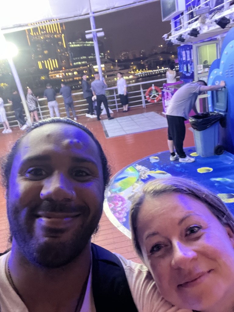 To top our mega day off (step count: 26,385), we returned to The Bund to book a cruise down the Huangpu river. The process is all fairly idiot proof – a big, well-lit ticket office and a single dock to enter from. We booked the final boat at 10pm which cost about £15 each for the 45min cruise. The weather was on our side and we saw all the towering, glittering buildings in all their glory – including the Oriental Pearl! Because we got the last boat, it wasn’t too crowded (except for the poor drunk dude who was vomming in the bin behind us).