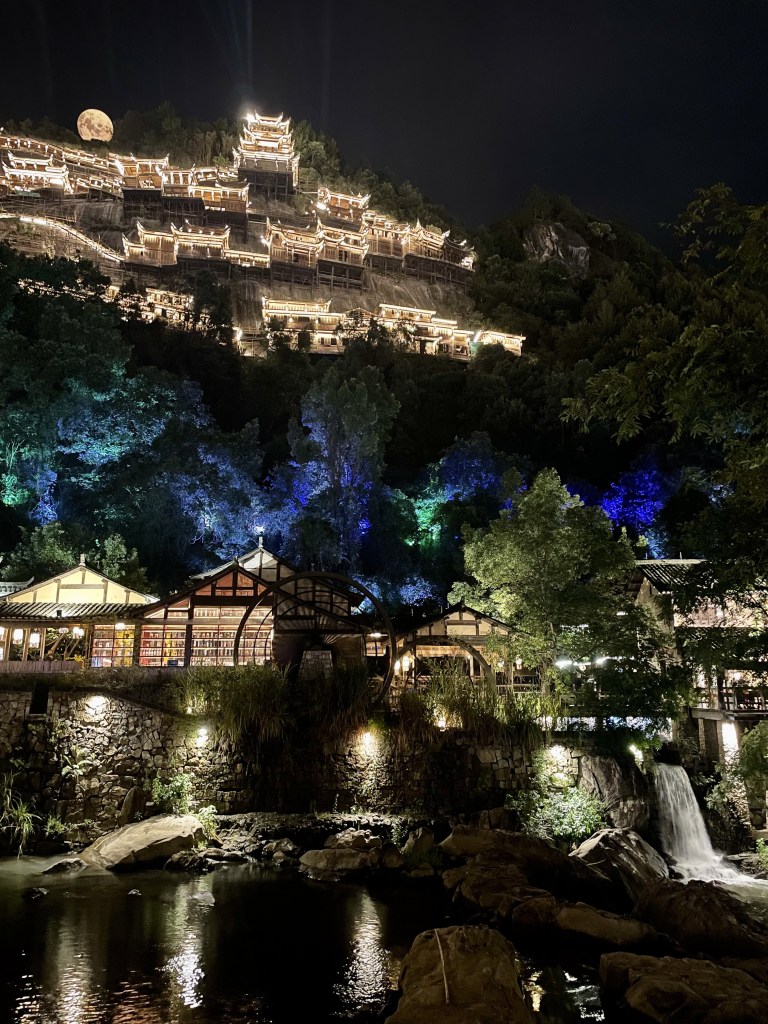 Everywhere you turned there were colourful lanterns in every shape and form, from the traditional style to massive sweeping dragons. Every walkway and shopfront was an opportunity for more light, every corner posed in front of by a beautifully-dressed Chinese woman having a gram-worthy photoshoot. The buildings in the cliffs were also glittering in front of giant moon (I first thought this was real… it was not, but still beaut none-the-less).