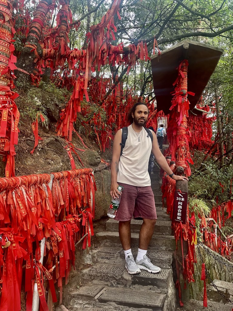 We followed a pathway that would lead us to the ‘Southern Heavenly Gate’. It was here we discovered ‘Chinese measurements’ – 10 metres for example, being much, much longer in China. An hour of nought but stairs later and we finally got to a bus stop via a couple of inquisitive macaques swinging from the trees above.