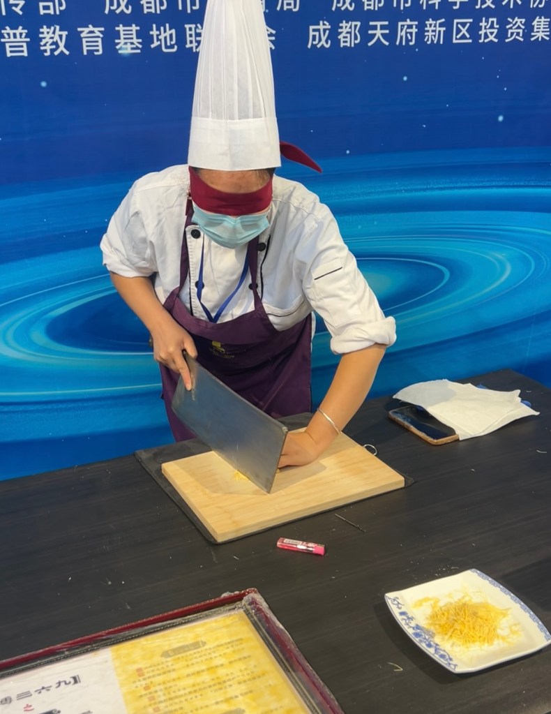 A final stop on the tour was a table in the middle of the garden where a woman I would almost certainly lose a fight to, was brandishing a heckin’ massive knife. She deftly displayed the cutting of super-fine silk noodles, made from egg yolk, flour and salt. This Masterchef (the only female Masterchef in the region), sliced us up noodles thin enough to thread through the eye of a needle. For some reason, still unknown to us both, she did this blind folded. Today is a fever dream.